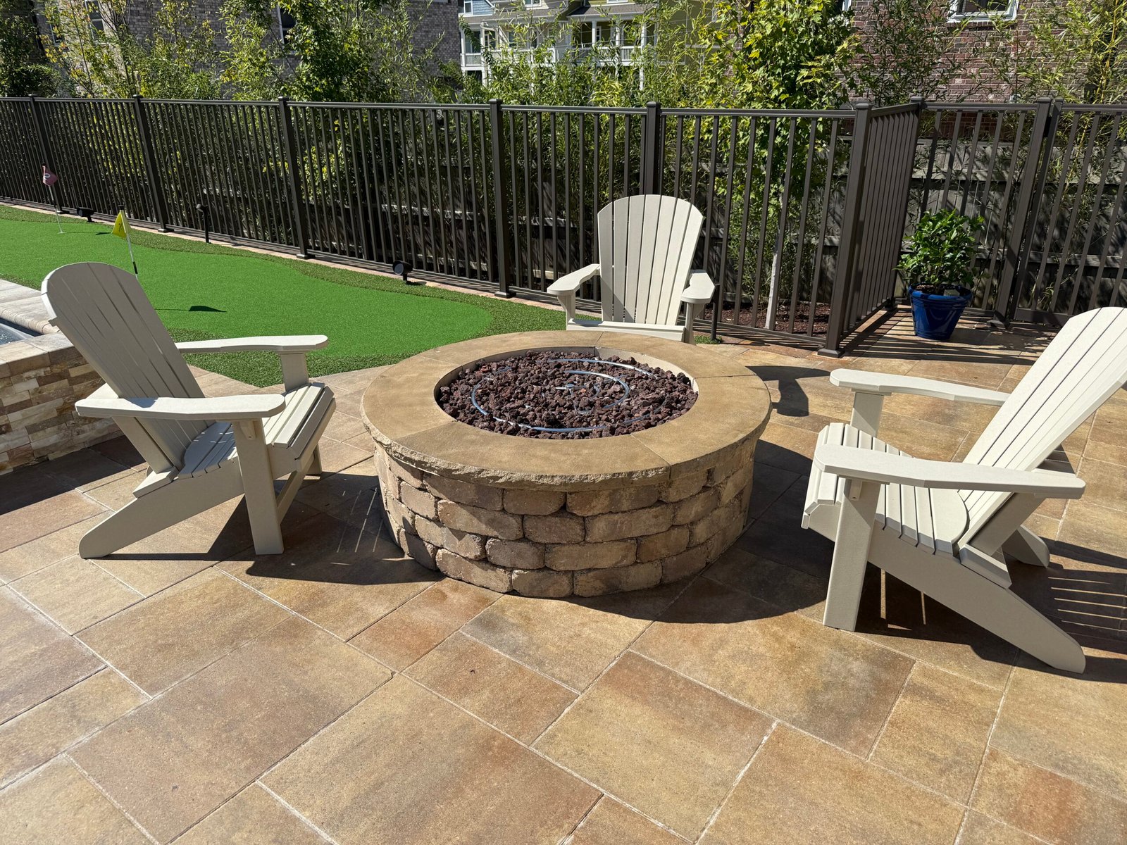 At Denali, we build more than basic fire pits—we create custom fire features that anchor your outdoor space and invite people to gather. Our signature offering: boulder fire pits built with locally sourced stone, hand-selected and stacked on site for a natural, grounded look that blends seamlessly with the landscape. We also install modern gas fire bowls, linear flame features, and built-in outdoor fireplaces to match the architectural style of your home and patio.